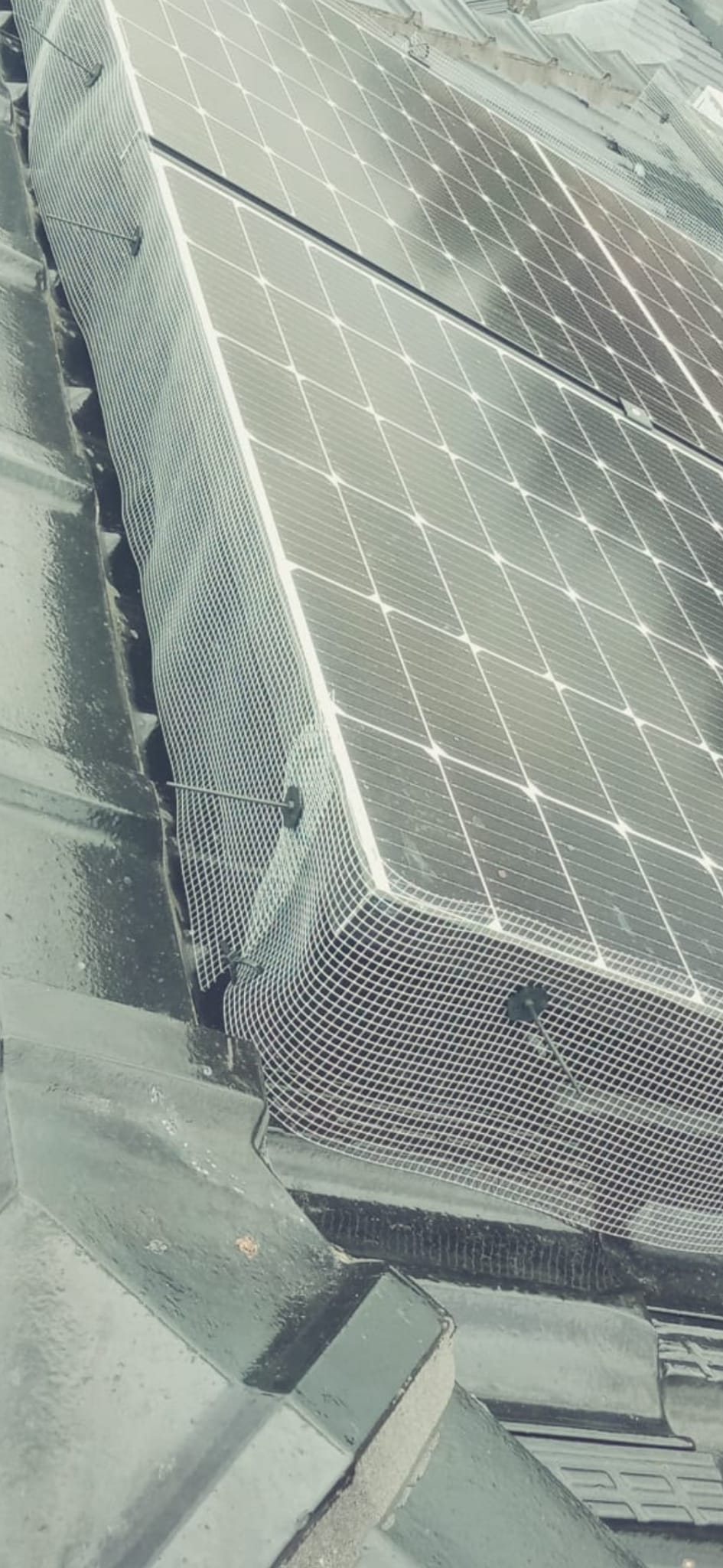 The bird barrier protects the solar panels against the damages that the birds cause. The bird barriers are designed to stop the birds from accessing the area underneath the solar panels because if they have access to that area, they can start nesting there or can cause other damages which in return costs heavy amounts to repair. We install bird barriers with 100% guarantee so that not even a single bird can access the area and your solar panels are safe. This will 100% stop pigeons from nesting under the solar panels as well.